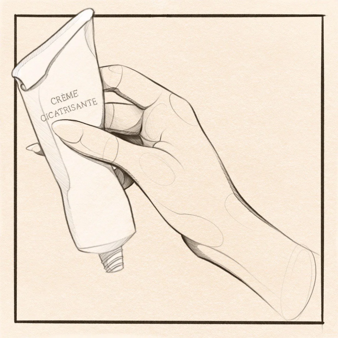 Appliquez la crème cicatrisante recommandée par votre tatoueur en fine couche et laissez-la pénétrer complètement dans la peau.